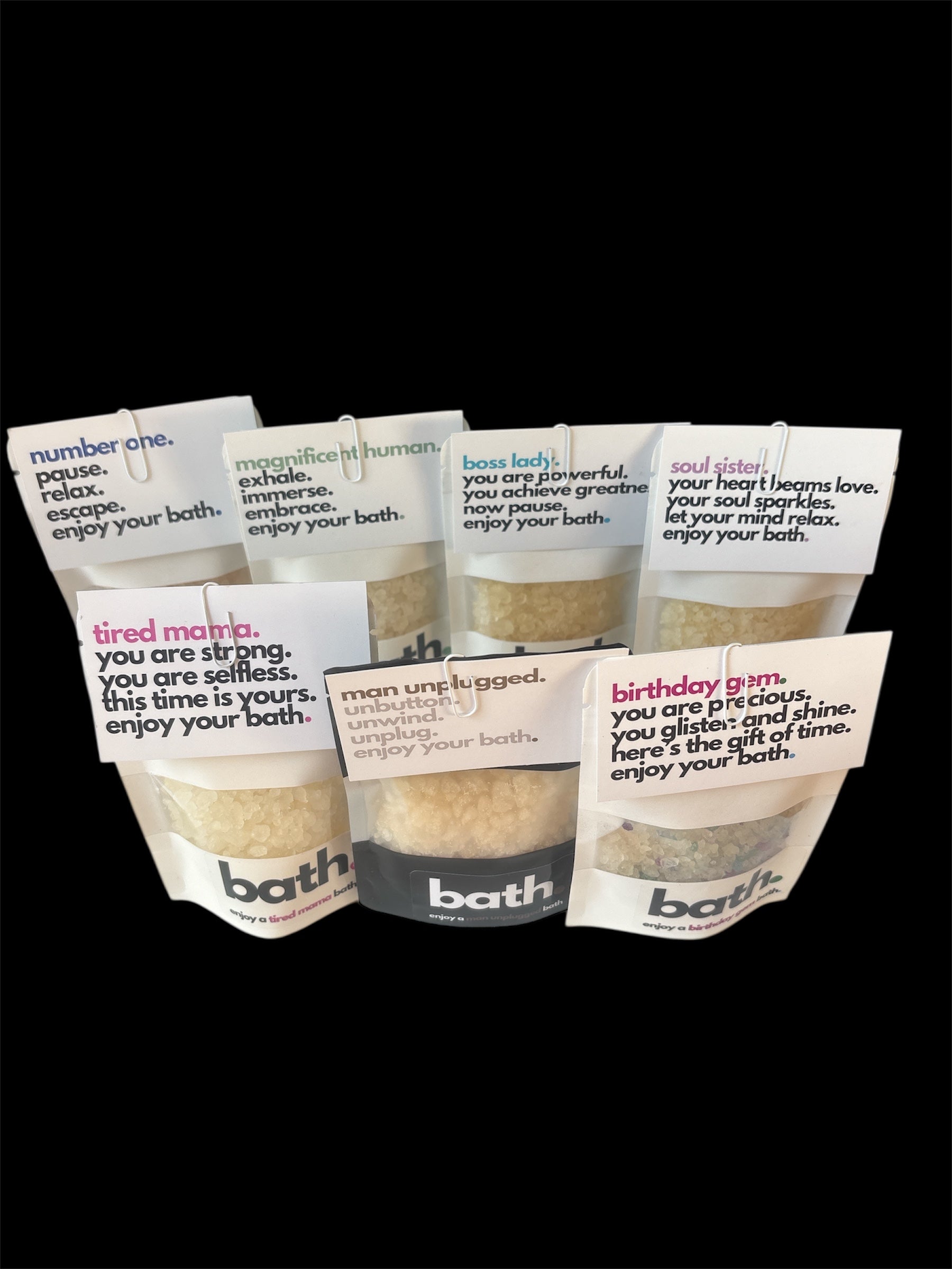 This 50g (2 baths) tired mama bath.salt contains pure essential oils. Each with the following properties: